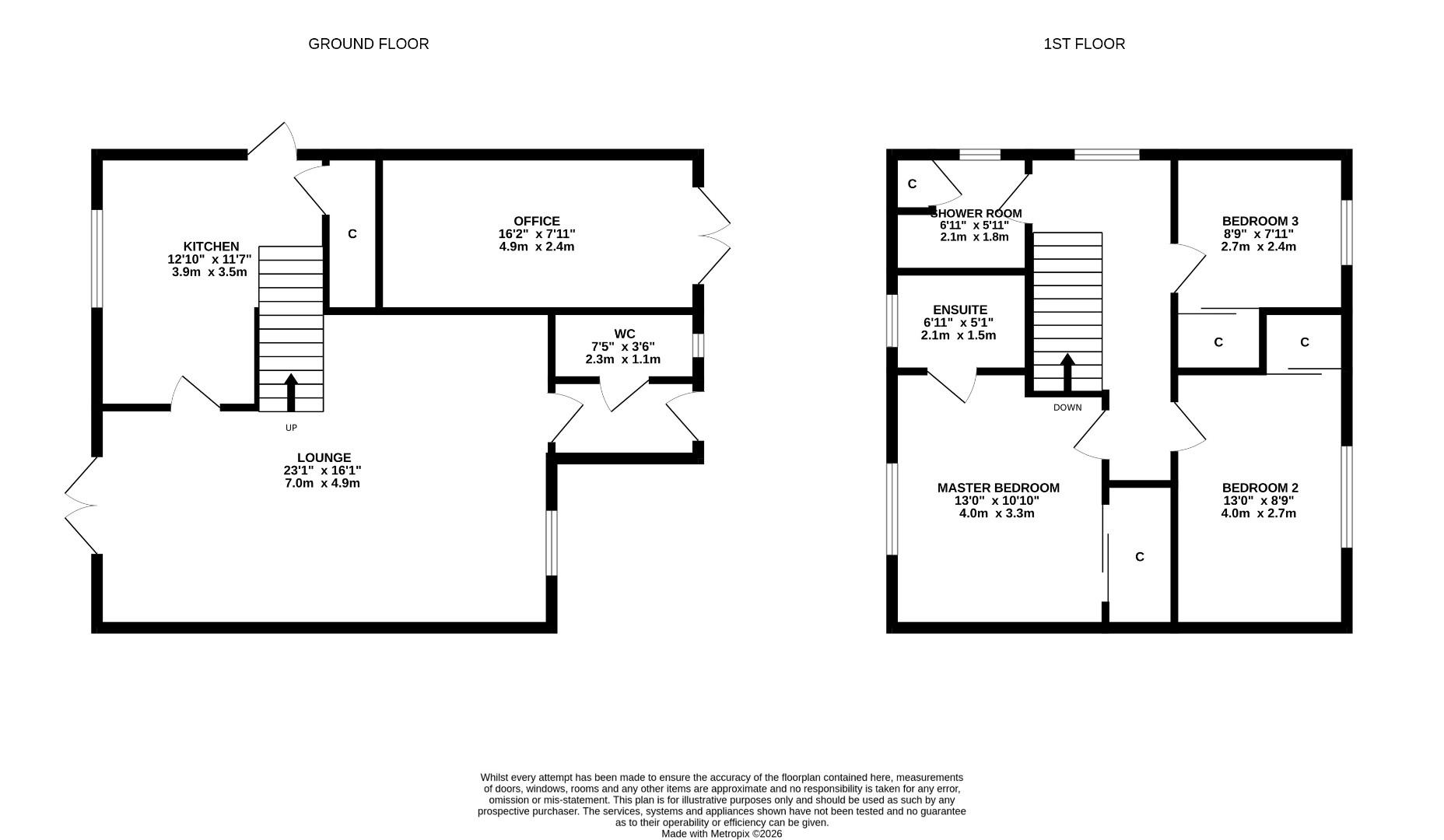 Master Bedroom 3.74m x 3.66m (12’3″ x 12’0″)