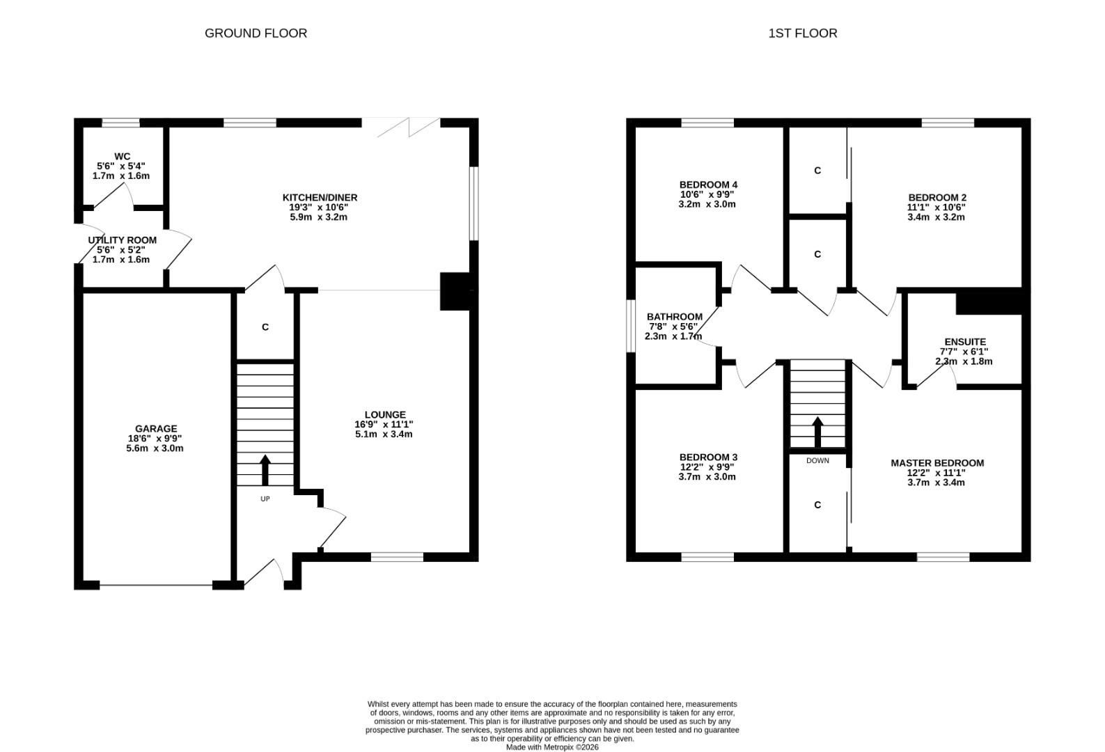 W.C 1.7m x 1.6m (5’6″ x 5’2″)